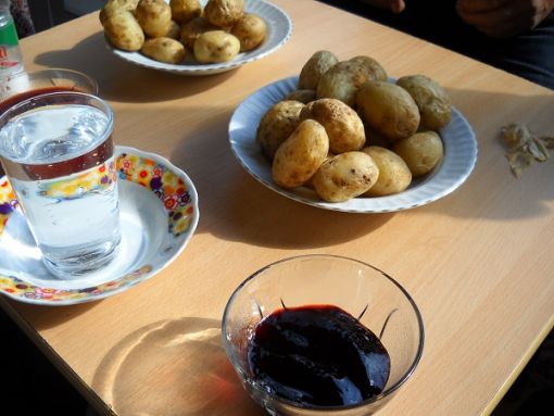 hele bu suda peşirilmiş patates ve yanında doğal pekmez ise ne yorgunluk kalır ne zor yol...
